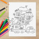 En liten bil släpar på något undermåligt förstärkta 3-våningshus med hög släp. Det finns en liten grönsaksodling vid tak, kompletterad med en fågelskrämma. Ett öppet badkar på andra golv. En sopor kan på baksidan av släpfordonet. En del tvätt torkar på vinden. Olika husdjur i familjen är bland annat hund, katt, kyckling och till och med guldfisk. En liten pojke vaknar från släpvagnens fönster.