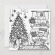 Kortet för julfärsfärgning. Festivt vardagsrum med Julgran och andra dekorationer färgkort för barn, tonåring eller vuxen.