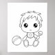 Cute tecknad pojke, klädd i en hoppdräkt med en liten stjärna. Leksak boll vilar på sidan. Tillverkad för enkel färgning.