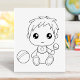 Cute tecknad pojke, klädd i en hoppdräkt med en liten stjärna. Leksak boll vilar på sidan.