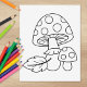 Tjud tecknad illustration av den rödklädda svampan med toadstool och ett torrt löv. Tillverkad för enkel färgning.