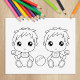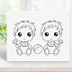 Cute tecknad pojke i hoppdräkter med matchande stjärnornas bibbar som håller baby. Leksak boll vilar mellan dem.