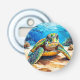En levande konstnärlig bild av en havssköldpadda med ljusa färger simmande bland koraller på en klar undervattensscen.