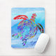 En roligt vattenfärgssköldpadda i stil , nyp, grönt, gyllene gult och blues simmande bland fredliga oceanen vågar. I det nedre högerna av musknappen finns det en mall för ditt namn eller initialer. Den här teckningen får dig att le och göra din dag ljusare..