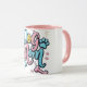 Den här roligten och den lekande designen i mugg har ord "Hund Mamma" skriven i ett dynamiskt, roterande skript med en blandning av rosa-, blått- och gult-bokstäver i svart. Mugg-designen är lekfullt dekorerad med färgstarkt tass avtryck i blå och vit nyans och söta benillustrationer i rosa och blått som är spridda runt texten mot en lätt grått bakgrund. Mugg-konstruktionen firar det kärleksfulla bandet mellan en vän till hund och hennes hårig, skapar det en glatt gåva från mors dag och en underbar mamma från mors dag mugg för vilken stolt hund som helst.