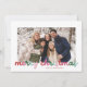 Färgskript Två Photo God jul-Helgdag-kort har en roligt och ett sunt skript i rött, grönt och rosa, tillsammans med foton och helgdag.
