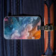En abstrakt som består av färgstarka snurrar, liknande moln eller vätskedynamik. I dominerande färg ingår nyanser av blått, rosa, orange och färgnyanser av vitt och lila. Blanketterna är mjuka och flyter och skapar en känsla av rörelse och viskhet.
