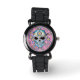 Designade nyanser av blått och rosa i sockerskalle omges av färgstarka blommor och hjärtan.