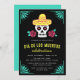 Gästerna från inbjudan till firande i Day of the dead med våra färgstarka inbjudningar till oss. Denna pulserande konstruktion har en handdragen sockerskalle med sombrero, försedd med rosa ros och akvatiska löv, inramad med akvariedekorativa dekorationer. "Día de Los Muertos Firande" visas i fet nyon gult-vintage med uppgifter om party nedan. Baksidan har en solid akvabasbakgrund som ger en ljus avslutande beröring.