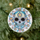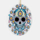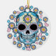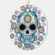 Designade nyanser av blått och rosa i sockerskalle omges av färgstarka blommor och hjärtan.