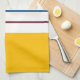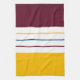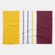Den här moderna kökshandduken har ett färgstarkt mönster i lila, gult och vitt rand.