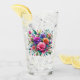 Detta är ett glas eller en torktumlare som har en färgstark blommigt.