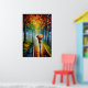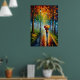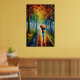 Det poster färgstarkt om en värld där höst löv dansar i regnet och målar gatorna med vibrerande färg. I denna poster ser vi en regnig dag, där allt känns lite ensamt, men också mysigt. En kvinna som går i regn och håller paraply på den här ensamma gatan. Det är som ett hemligt äventyr i regnet. Du kan ändra storleka på poster.