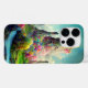 Färgstark utomjordisk fantasi panoramisk landskap med förändrad skog, flod och kastlar i bakgrunden.