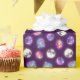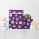 Olika söta och färgstarka fladdermöss i ett icke-riktat helomliggande mönster på mörkens lila. En fladdermus är innanför en glättande jack-o-lantern-pumpa, en flyger över en fullt måne, en flyger förbi ett halvmåne måne med en häxhatt och den sista är ett sött skelett fladdermus framför en graveston.