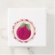 Färgstarka, klara märkre i julklapp i rosa. Handfärg i vattenfärg och bläck med klara och färgstarka juldetaljer om orange och rosa, med blommigtar och blad.
