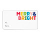 Fånga julhelgens glädje och magi med den här unika och festliga, färgstarka nyheten och den klara rektangulära presentetiketten. Den enkla men ändå roligt-utformningen har en regnbågspalett med rött, grönt, gult, blått, orange och rosa färg som skapar en sjudande och glad atmosfär. Kreativet och den minimalistiska inställningen, med fet typografi, ger en originell och trendig beröring. Perfekt för barn och ungdom i hjärtat, denna utformning omfattar ett ljus och en känsla för avslappnad och sprider lycka med dess trevliga ordalydelse. Fira december i stil med detta vackra hälsning!