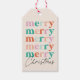 En modern, färglös och skarp märkre i god jul med ord "merry"-skrivna många-tider ovanpå varandra i vackra helgdag färg. "Julen" i ord är skriven i ett modernt manus. Trendigets typografi kommer att göra detta till ett populärt val.