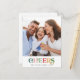 Det här färgstarka jubileet nyårsaftkortet porträtt gör att perfekten blir modern att Julhälsningar. Den enkla designen har söt och roligt typografi med alternerande färgad brev i rött, rosa, smaragd grönt, pastellgrönt och gult guld. Lägg till din familj bild och anpassa vykortet med din familj namn, år, hälsning och namn.