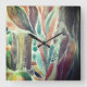 Färgstark och grön vattenfärg Tropiskt Fyrkantig Klocka