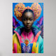En bild av en prinsessa som bär en färgstark regnrock. Det här är en bild som skapas av AI med blommigtens temadesign.