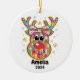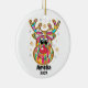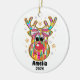 En söt, flerfärgad renare ansikte med en coquette-buk på huvudet. Det här skulle vara underbart för en ung flicka! Utformningen har också guld och silver snöflingor och kan vara personlig med namn och år framtill och ett ytterligare budskap på baksidan!