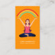 Främja din yoga- eller hälsa-träning med den här roligten och lugnande affärskortet, perfekt för holistiska yoga-utövare, instruktörer och andlig-tränare. En tecknad som illustrerar hur man mediterar en kvinna med en vibrerande regnbåge ovanför henne på en ljus orange som symboliserar kreativitet, sensualitet och nöje, känslomässigt uttryck, livskraft och glädje. Perfekt för yogastudios, hälsa-regat, semesterterapi och meditationslärare. Anpassa med ditt namn, din kontaktinformation och din studiobranding för att lämna ett bestående intryck på kunder och studenter.