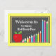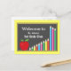 Det här välkomstkortet i Back to school innehåller ett tema i kretskort som accentueras med färgpennor och ett rött äpple. Baksidan innehåller anpassade för att lägga till ditt personliga meddelande.