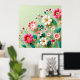 Färgfull arrangemang av stiliserade blommor och löv. Blommorna är gjorda i ett tredimensionellt, pappert konst stil med vibrerande färg, inklusive rosa, vitt och teal.