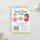 Förbluffa dina gäster med den här färgstarka festinbjudan med söta barn och färgade bokar med vibrerande typografi mot en vit bakgrund. Lägg bara till din händelseinformation i den här mallen för enkel använda så att den blir en enkel inbjudan. Vänd över kortet för att visa en färgstark rand mönster på baksidan av kortet.
