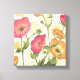 © Sue Schlabach / Vild Apple. En bild med daisy av olika färg. Den benvita bakgrunden till bilden har silhuetter av mindre blommor.