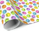 Orange, rosa, lila, grönt, blått och gult emoji ansikte på vit bakgrund täcker detta papprare.