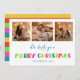 Roligt och glad design med färgstark och fet brev-text "God jul" med tre familjefotografier. Det här hälsningskortet är perfektens val att sprida glädje denna jul! Anpassa den utan problem.