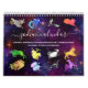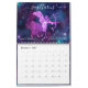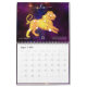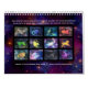 Den här vackra, artsy boho-kalendern har en annan färgstark, moderniserad vintage som illustrerar zodiac-tecknet för varje månad, med tillhörande konstellation som läggs ovanpå varje bild. Bilden för varje bild innehåller teckningens associerade färg, tillsammans med tecknets namn som skrivs ovanför varje bild i elegantens skripttypografi med dekortecken för ett klassat, handskrivet utseende. Under varje bild visas data som är associerat med varje zodiaktecken, dess astrologiska symbol och en lista över egenskaper eller betydelser som är kopplade till tecknet. Varje månads bild finns på en stjärnfylld galaxi-himlar-bakgrund med olika färgader. Det vita kalenderrutnätet för varje månad omges av en tunn gräns av sellerisk galaxbakgrund. Kalendern är underbar för älskare av astrologi och astronomi.