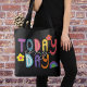 Där! Få redot att göra din dag ljusare med vår fantastiska toteväska! Den här väskan har en slimmad och färglös typografi på en slimmad svart bakgrund och handlar bara om att sprida positiva virus. På ena sidan hittar du inspirerande ord "Be Lycklig, Be dig" - en varm påminnelse om att ta till dig ditt verkliga självmord och utstråla lycka. Och på andra sidan hälsas du med den egenmäktiga frasen "Today is My Day" - ett fantastiskt mantra att gripa dagen! Kör det här trendiget till dig och säg till världen att du bara handlar om dig själv kärlek och att leva ditt bästa liv! Du kan anpassa det med ditt namn eller ta bort det.