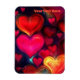 Många, färgstarka hjärtan på mörkens bakgrund. Anpassa genom att lägga till egen text. Du kan ändra både teckensnitt och text färg.