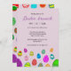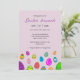 Många färgstarka och vackra Påskägg på inbjudan till en Påsk brunch- och äggjakt.