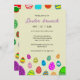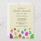 Många färgstarka och vackra Påskägg på inbjudan till en Påsk brunch- och äggjakt.