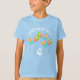 Färgämnen i Party Buboner Birthday Boy Blue T-Shirt. Party gäst för hedersskjorta med fyra färgstarka ballonger i rött, grönt, blått och orange färg.