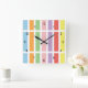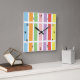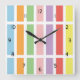 Geometrisk linjär, rektangulär, strimlad mönster av regnbågsskal av blått, orange, grönt, rosa, lila, rött och gult.