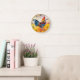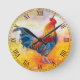 En färgstark Cockerel Tupp Digital Art-Oljemålning. Den här fågelkonsten framställs som en traditionell oljemålning som ser ljusa färger ut i blått, rött, orange och gult. Konsmålning av originalkonst hos husdjur. Underbar för en köksbondgård eller någon annan som kärlek kycklar. Roman Numbers Clock Ansikte i Mörk Red Maroon.