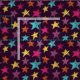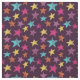 Ljusa och fet målade stil-bilder av stjärnor i lilac lila, ljusblått turkos, gult, magentans rosa och orange ställs in mot en mörkens lila bakgrund på detta mönstrade tyg.
