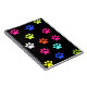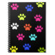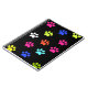 Den här designen har tass avtryck i flera färg i vitt, lila, grönt, rosa, blått, gult och orange mot svart bakgrund.