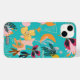 Burgundy, orange och rosa blommigt på blått mönster, illustration till henne.