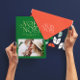 Färgstark, ljus roligt Noel-helgdag för julgeometrisk typografi. Röd, grönt, akvarium, marinblått och rosa färgen.