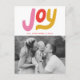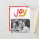 Trendig- och modernt vykort för helgdag med"Joy" i rosa-, rött- och guld-bokstäver på framsidan med ditt favoritfamiljefoto som visas nedan. Anpassa framsidan av det färgstarka helgdag genom att lägga till ditt namn och året. Baksidan av helgdag vykort har returadress, anpassningsbar och en röd och vit prickad bakgrund. Designad att samordna med vår moderna, färgstarka julkortssamling.