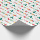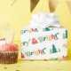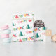 Julomslag pappra med mönster med texten "Merry & Bright" i ett färgstarkt, reflexartat och grönt Julgranar.