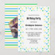 Pojkfödelsedag med blå, gult och grönt stjärnor. Anpassade i alla åldrar. Fotomall via Pixabay med licens enligt CC0 och måste ersättas med ditt eget foto