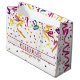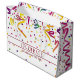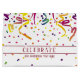 Spelar ingen roll i tillfälle, se till att du slår ihop sak med presentsäcksdesignen. Färgfulla remsor och konfetti dekorerar väskan. På grund, på framsidan och baksidan finns det en banderoll med ord "CELEBRATE". Under banderollen är området för ytterligare text. All text i den här designen kan vara personlig.