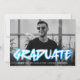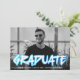 Trendigets studenten-meddelande med vågrät student med "Student" i blått 90-stil-tecken. Anpassa det djärva tillkännagivande för studenten genom att lägga till student namn, skolan och studenten. Baksidan av meddelandet har en blå gradient konetti mönster.
